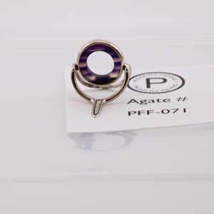 Our agate stripping guides are made one at a time in Montana. These guides feature hand bezeled natural agate in a wide range of colors. Each guide is set in nickel silver and feature a low profile frame. The guide pictured is the guide you will get. Each guide is unique and to ensure the guide is right, we photograph each individual guide along with a serial number for reference.