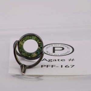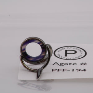 Our agate stripping guides are made one at a time in Montana. These guides feature hand bezeled natural agate in a wide range of colors. Each guide is set in nickel silver and feature a low profile frame. The guide pictured is the guide you will get. Each guide is unique and to ensure the guide is right, we photograph each individual guide along with a serial number for reference.