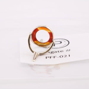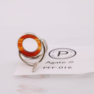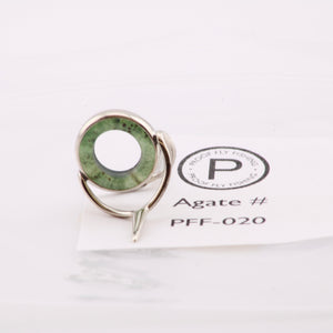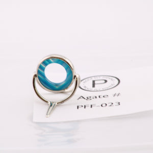 Our agate stripping guides are made one at a time in Montana. These guides feature hand bezeled natural agate in a wide range of colors. Each guide is set in nickel silver and feature a low profile frame. The guide pictured is the guide you will get. Each guide is unique and to ensure the guide is right, we photograph each individual guide along with a serial number for reference.