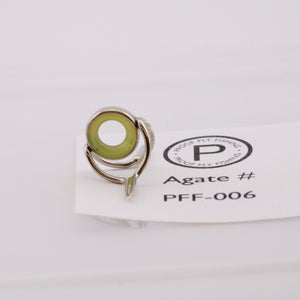 Our agate stripping guides are made one at a time in Montana. These guides feature hand bezeled natural agate in a wide range of colors. Each guide is set in nickel silver and feature a low profile frame. The guide pictured is the guide you will get. Each guide is unique and to ensure the guide is right, we photograph each individual guide along with a serial number for reference.