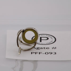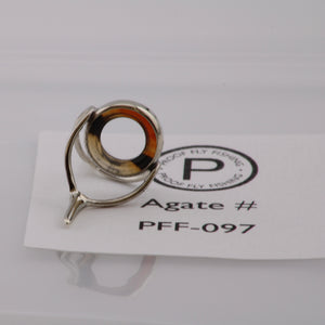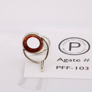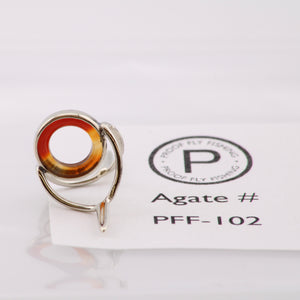 Our agate stripping guides are made one at a time in Montana.  These guides feature hand bezeled natural agate in a wide range of colors.  Each guide is set in nickel silver and feature a low profile frame. The guide pictured is the guide you will get.  Each guide is unique and to ensure the guide is right, we photograph each individual guide along with a serial number for reference.