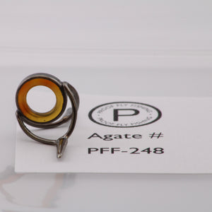 Our agate stripping guides are made one at a time in Montana.  These guides feature hand bezeled natural agate in a wide range of colors.  Each guide is set in nickel silver and feature a low profile frame. The guide pictured is the guide you will get.  Each guide is unique and to ensure the guide is right, we photograph each individual guide along with a serial number for reference.